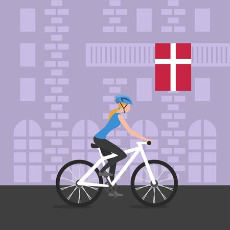 街を駆け抜ける自転車に自転車女の子のベクトル イラストバイクと自転車 スポーツと運動 バルコニーに米国の旗 米国で健康的なライフ スタイル のイラスト素材 ベクタ Image
